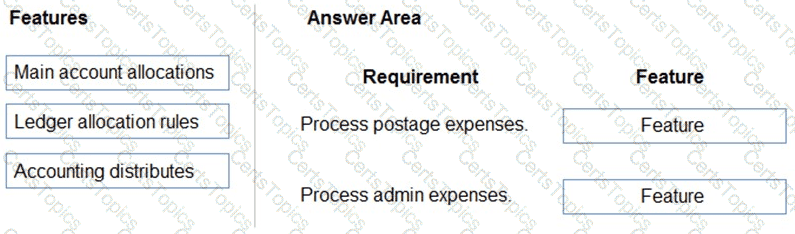 Which features should you use? To answer, drag the appropriate features to the correct requirements. Each feature may be used once, more than once, or net at all. You may need to drag the split bar between panes or scroll to view content.