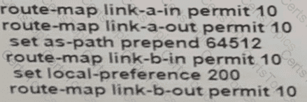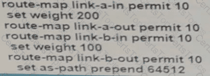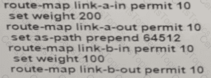A network engineer for AS64512 must remove the inbound and outbound traffic from link A during maintenance without closing the BGP session so that there ............ a backup link over link A toward the ASN. Which BGP configuration on R1 accomplishes this goal?