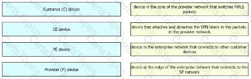Drag and drop the MPLS VPN device types from me left onto the definitions on the right.