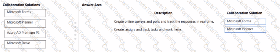 Match each collaboration solution to its description. To answer, drag the appropriate collaboration solution from the column on the left to its description on the right.Each collaboration solution may be used once, more than once, or not at all.