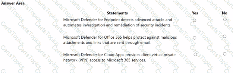 For each of the following statements, select Yes if the statement is true. Otherwise, select No.
