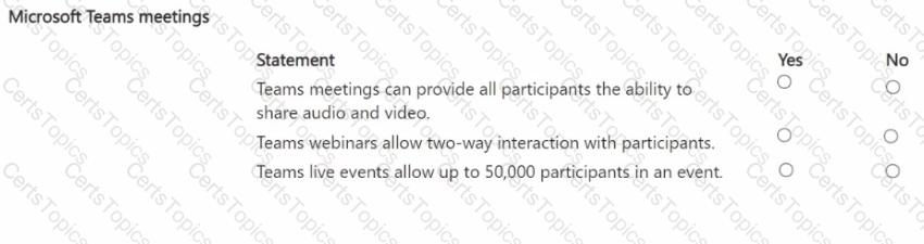 Instructions: For each of the following statements, select Yes if the statement is true. Otherwise, select No.