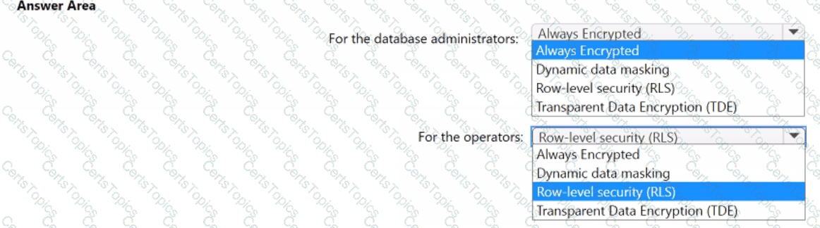 • When the database administrators access DB1 by using SQL management tools, they must be prevented from viewing the content of the Credit Card attribute of each customer record.