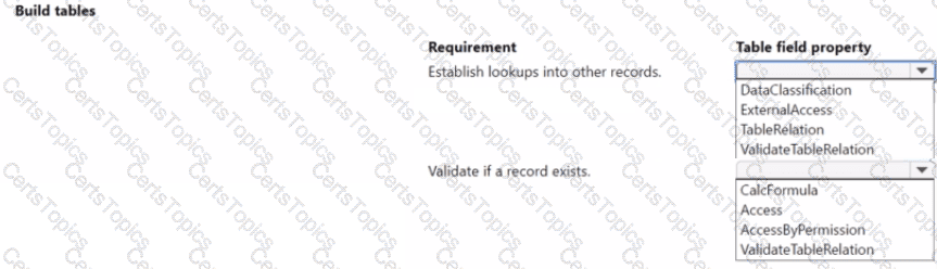 Which table field property should you use? To answer, select the appropriate options in the answer area.