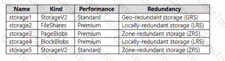 You have an Azure Virtual Desktop deployment and the Azure Storage accounts shown in the following table.