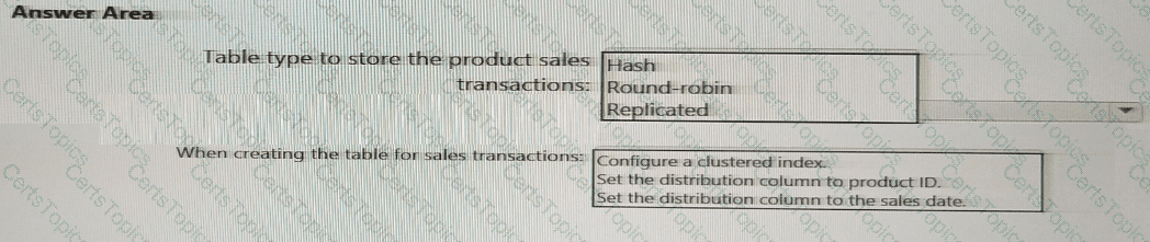 You need to design a data storage structure for the product sales transactions. The solution must meet the sales transaction dataset requirements.