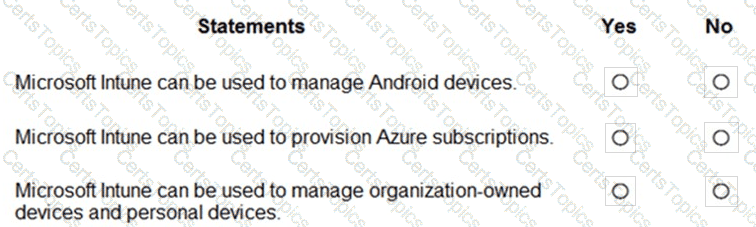 For each of the following statements, select Yes if the statement is true. Otherwise, select No.