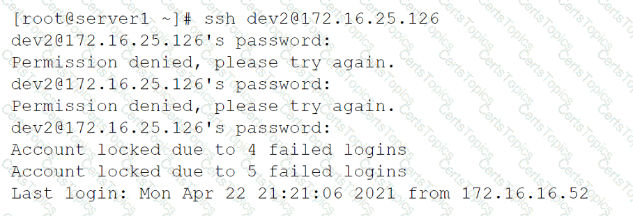 The systems administrator investigates the issue and receives the following output: