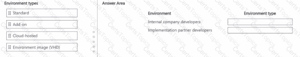 A company uses Dynamics 365 Finance. You build an environment plan for the company. The company plans to develop solutions by using internal company developers as well as implementation partner developers.