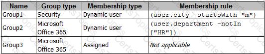 You have an Azure Active Directory (Azure AD) tenant named adatum.com. Adatum.com contains the groups in the following table.