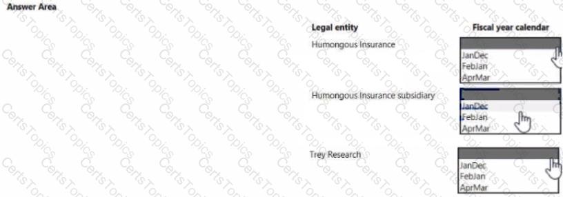 How should you configure the fiscal year calendars? To answer, select me appropriate options in the answer area.