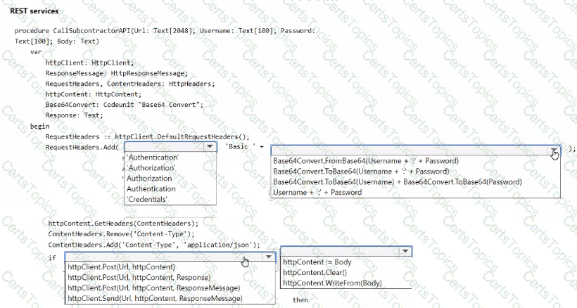 How should you complete the code segment? To answer, select the appropriate options in the answer area.