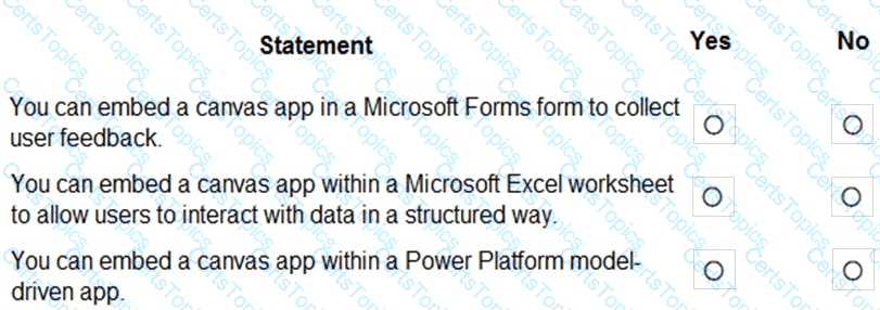 For each of the following statements, select Yes if the statement Is true. Otherwise, select No.