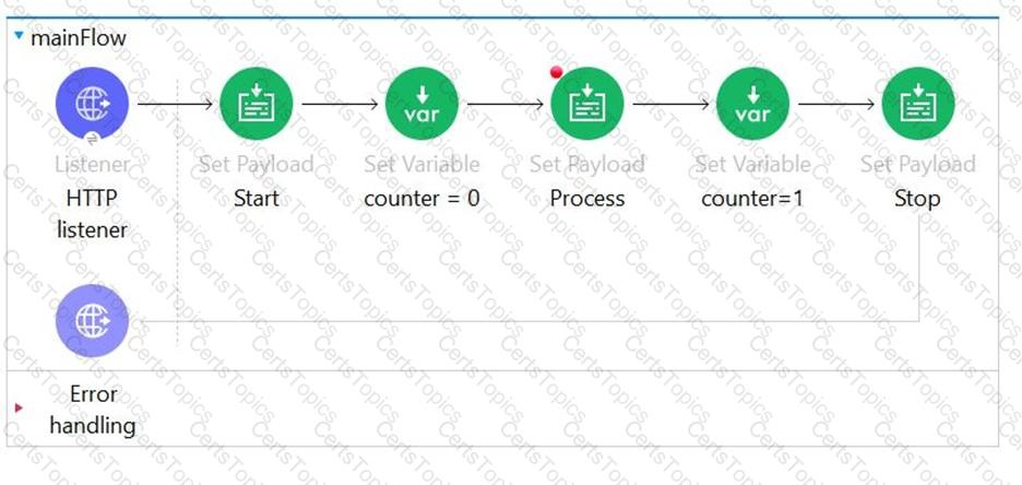 The mule application is debugged in Anypoint Studio and stops at the breakpoint as shown in below exhibit.