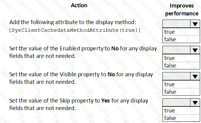 A user reports that a form takes a long time to load. You suspect that the issue relates to a display method.