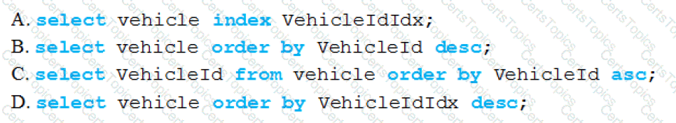 You have a table named FMVehicle that contains a field named Vehicleld. The table has a clustered index named Vehicleldldx on the Vehicleld field. You declare a table buffer named vehicle to refer to the table.