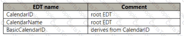 A company uses Dynamics 365 Finance. You are customizing elements for the extended data types (EDTs) shown in the following table.