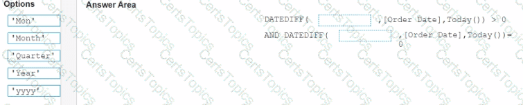 How should you complete the formula? (Drag the appropriate Options to the Answer Area and drop into the correct locations.)