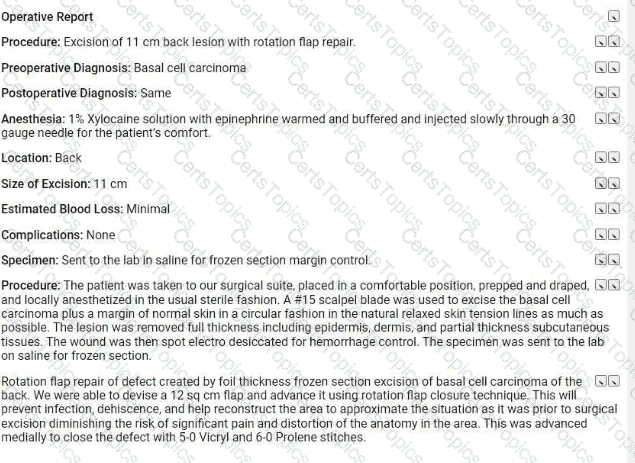 A patient presents with 26 skin tags on the neck and shoulder. The provider removes all using a scissoring technique.