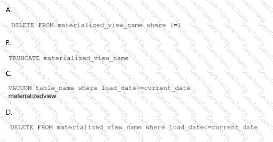 B. VACUUM DELETE ONLY Orders. This option reclaims disk space by removing deleted rows, but does not resort the table. This option is not suitable for tables that have any sort key, as it does not improve the query performance by restoring the sort order. Moreover, this option does not analyze the sort key column and update the table statistics.