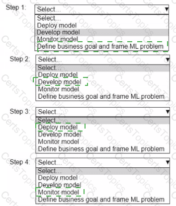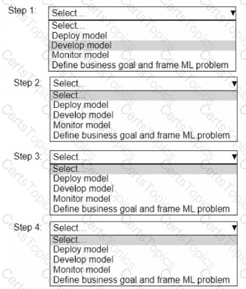 Select and order the correct steps from the following list to develop a well-architected ML workload. Each step should be selected one time. (Select and order FOUR.)