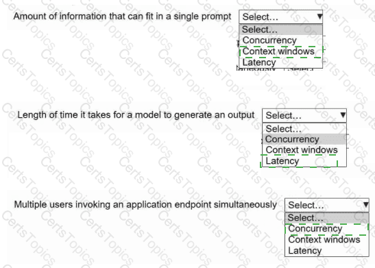 Select the correct AI term from the following list for each statement. Each AI term should be selected one time. (Select THREE.)