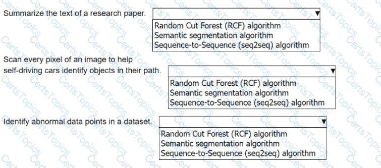 Select the correct SageMaker built-in algorithm from the following list for each use case. Each algorithm should be selected one time.