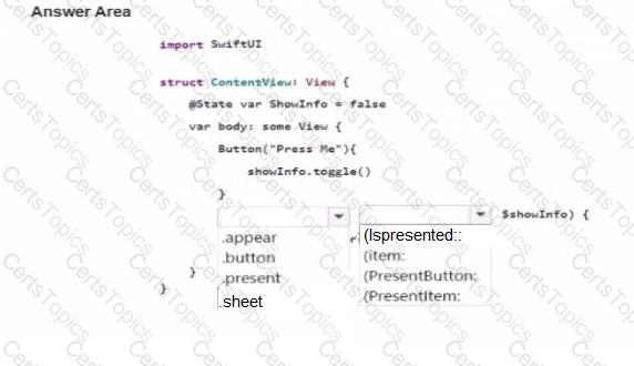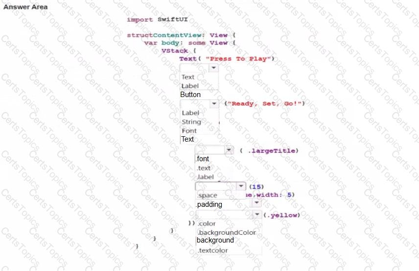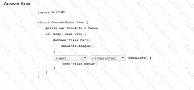 Complete the code by selecting the correct option from each drop-down list to create the following screen.