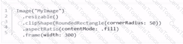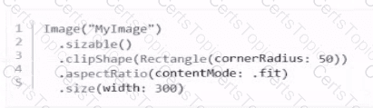 Which code correctly creates a size 300 rectangular Image View with rounded corners that displays the entire image, regardless of size?