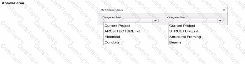 An electrical designer needs to check for Interferences between conduit in the host model and beams in a linked structure model in the Interference Check dialog, select the items that the designer must select to perform the interference check. (Select two.)