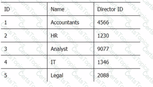 Below are three tables: Employees, Departments, and Directors.