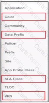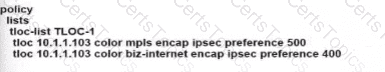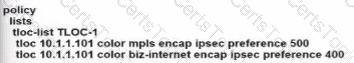 The SD-WAN network is configured with a default full-mesh topology. The SD-WAN engineer wants the Barcelona WAN Edge to use MPLS TLOC as the preferred TLOC when communicating with Rome site. Which configuration must the engineer use to create a list to select MPLS color toward the Rome TLOC?