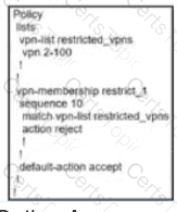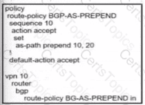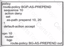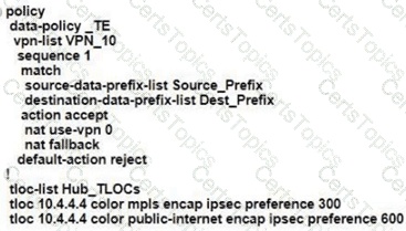 An engineer creates this data policy for DIA for VPN 10: