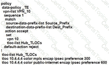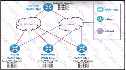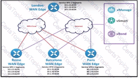 The SD-WAN network Is configured with a default full-mesh topology. The network engineer wants the Rome WAN Edge to use the MPLS TLOC as the preferred TLOC when ….. Telnet traffic as long as me MPLS Ink has these, characteristics: