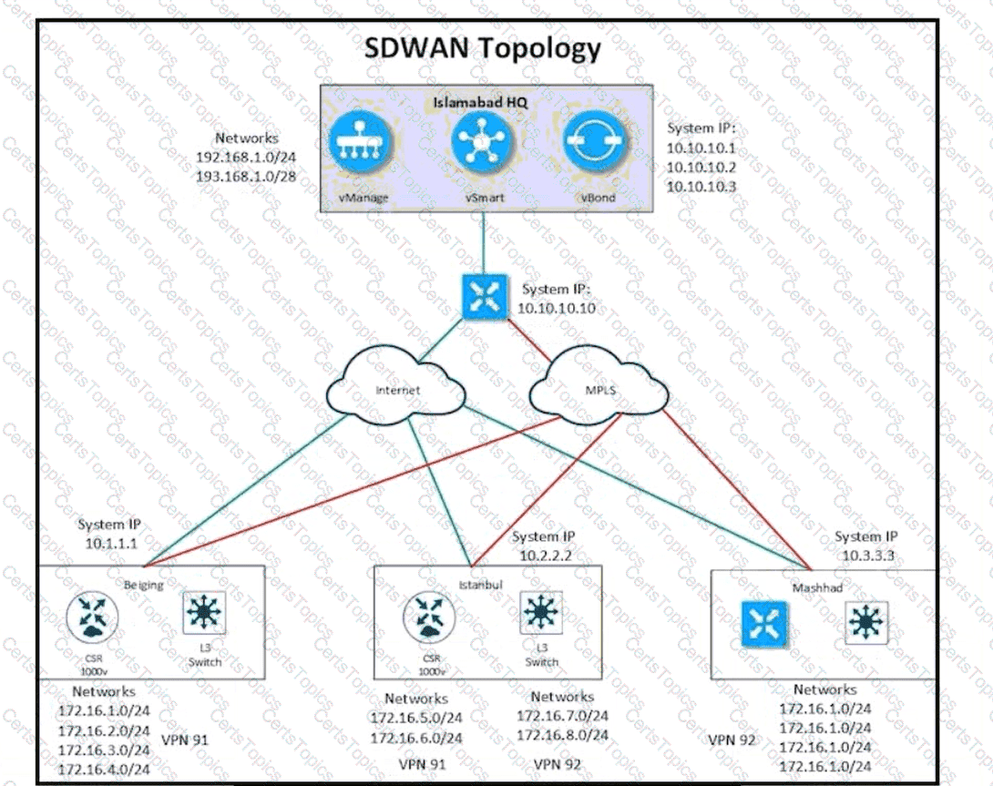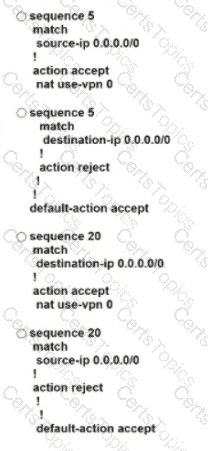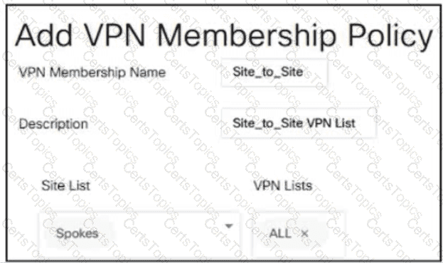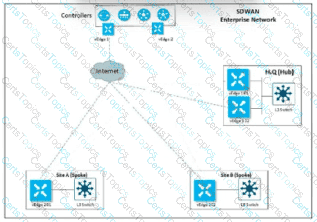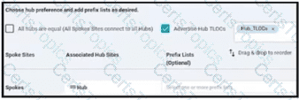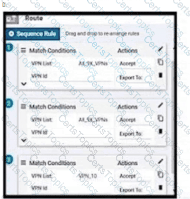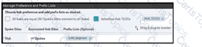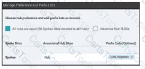 After deploying Cisco SD-WAN the company realized that by default, all sites built direct IPsec VPN tunnels to each other In their previous topology all spoke sites used the head office as their next hop for the LAN segment that belongs to network 40.0.0.0/16 The company wants to deploy its previous policy, which allows the 40.0.0.0/16 network that originates at the hub to advertise to the spokes. Which configuration meets the requirement'?