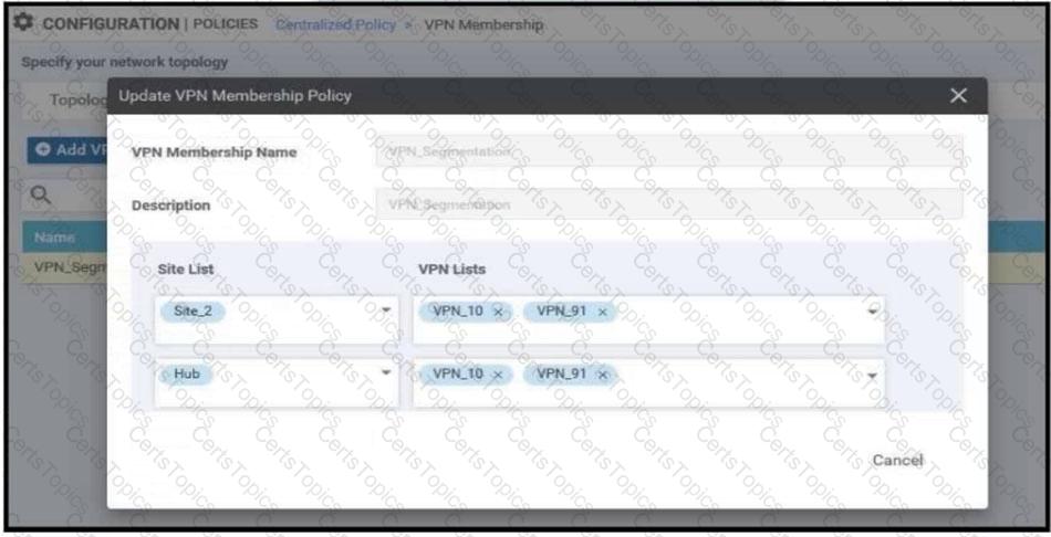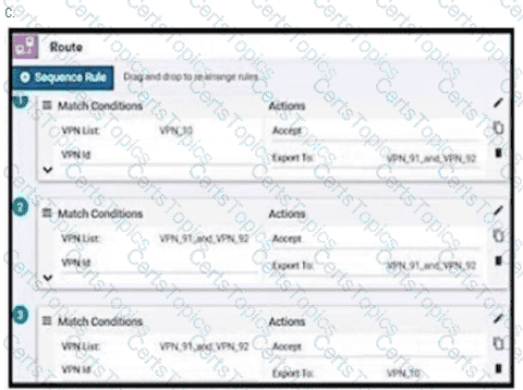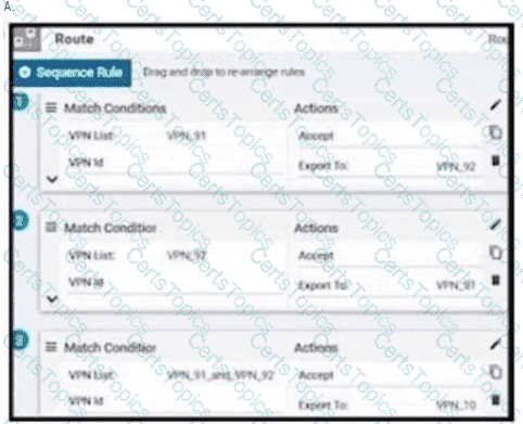 An enterprise has hub and spoke topology where it has several VPNs. An engineer must allow users in VPN91 to reach users in VPN92 and VPN10 to reach VPN91 and VPN92. Which configuration meets these requirements?