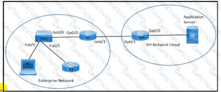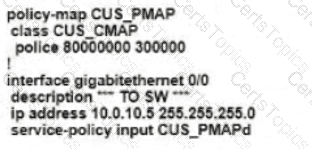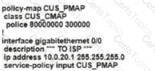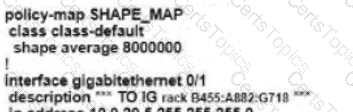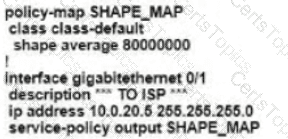 Refer to the exhibit. An enterprise network is connected with an ISP network on an 80 Mbps bandwidth link. The network operation team observes 100 Mbps traffic on the 1Gig-ISP link during peak hours Which configuration provides bandwidth control to avoid traffic congestion during peak hours?