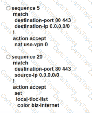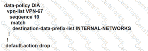 An engineer modifies a data policy for DIA in VPN 67. The location has two Internet-bound circuits. Only the web browsing traffic must be admitted for DIA. without further discrimination about which transport to use.