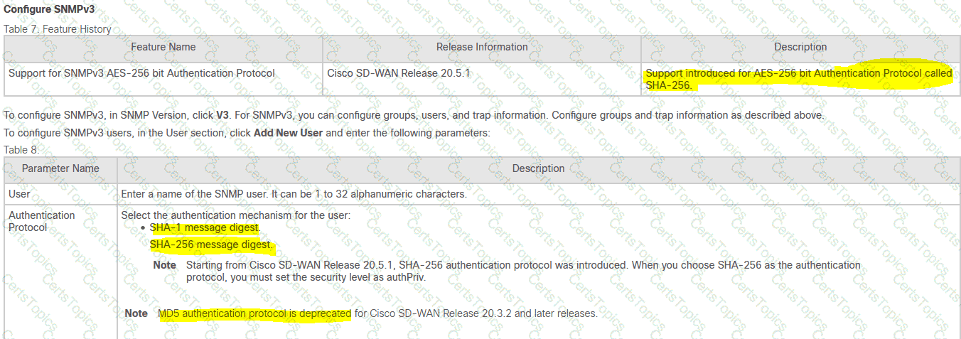 Which two algorithms authenticate a user when configuring SNMPv3 monitoring on a WAN Edge router? (Choose two.)