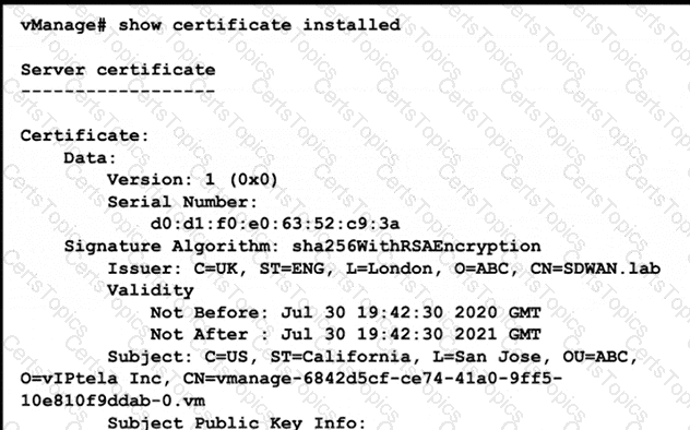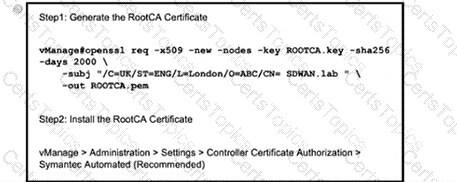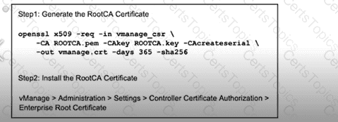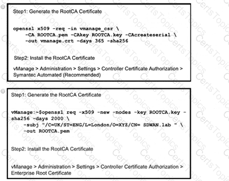 Refer to the exhibit A small company was acquired by a large organization As a result, the new organization decided to update information on their Enterprise RootCA and generated a new certificate using openssl Which configuration updates the new certificate and issues an alert in vManage Monitor | Events Dashboard?