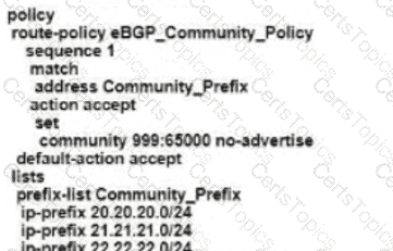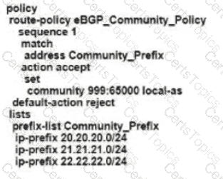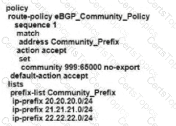 Refer to the exhibit The engineering must assign tags to 3 Of its 74 server networks as soon as they are advertised to peers These server network must not be advertised AS which configuration fulfil the requirement?