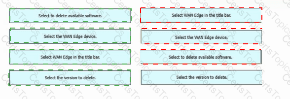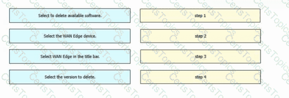 Drag and drop the steps from the left Into the order on the right to delete a software image for a WAN Edge router starting with Maintenance > Software Upgrade > Device list on vManage.