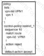 A customer has 1 to 100 service VPNs and wants to restrict outbound updates for VPN1 Which control policy configuration restricts these updates?