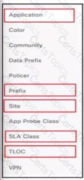 Drag and drop the vManage policy configuration procedures from the left onto the correct definitions on the right.