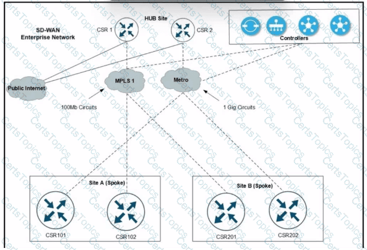 Refer to the exhibit. A Cisco SD-WAN network carries traffic for several departments and over 1200 users with several applications at site A and site B branches over the MPLS1 circuit. An engineer is provisioning a higher bandwidth on-demand metro circuit as a backup connection. Which two configurations must the engineer apply to implement the on-demand tunnels? (Choose two.)