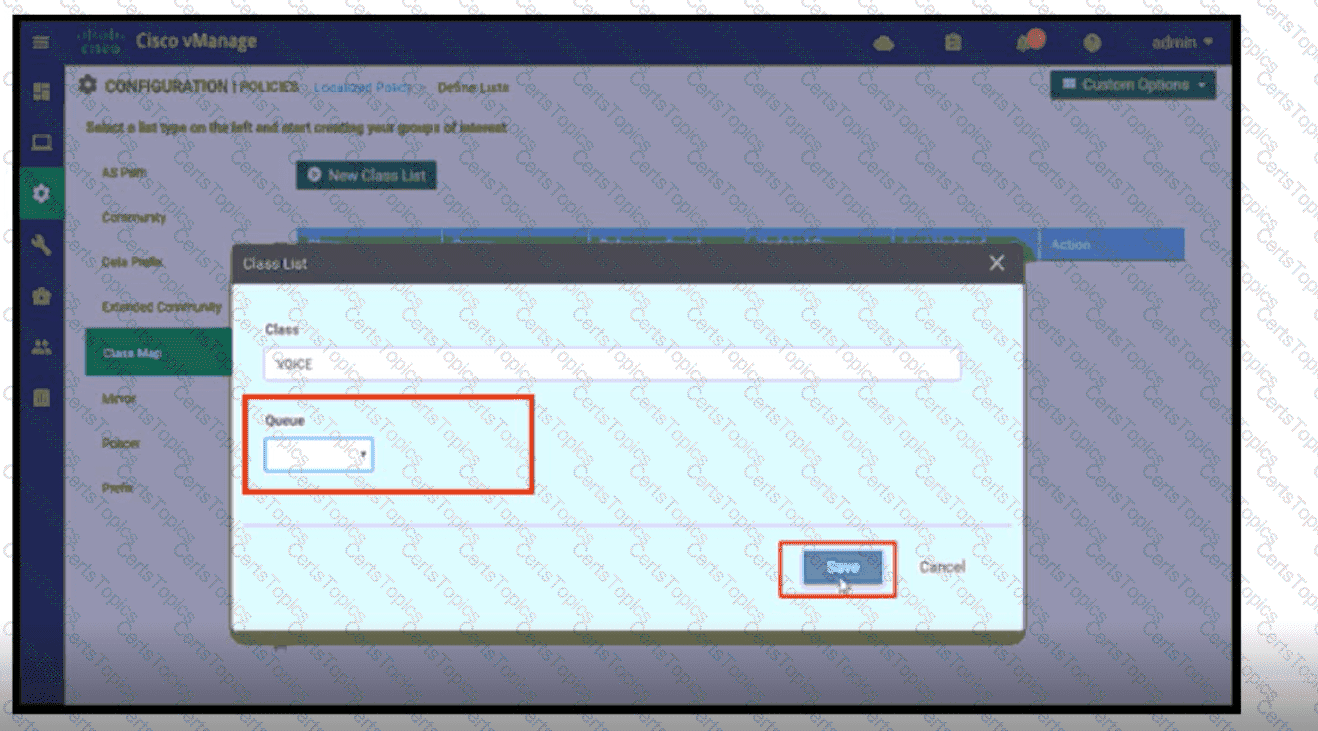 Refer to the exhibit. A network administrator is setting the queueing value for voice traffic for one of the WAN Edge routers using vManager GUI. Which queue value must be set to accomplish this task?