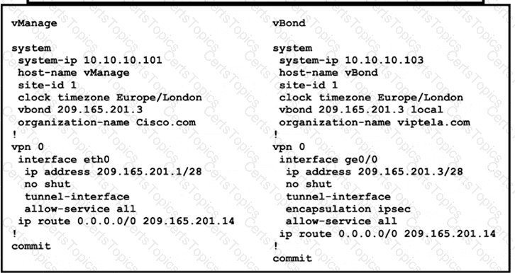 Refer to the exhibit vManage and vBond have an issue establishing a connection with each other Which action resolves the issue?