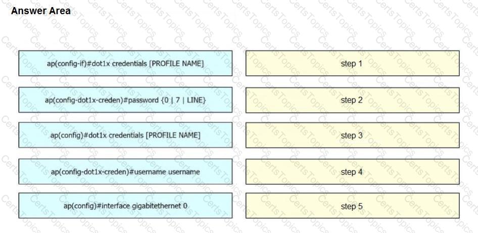 A network engineer must get an autonomous AP to authenticate to the upstream switch via IEEE 802.1 X. Drag and drop the commands from the left onto the right to complete the configuration.