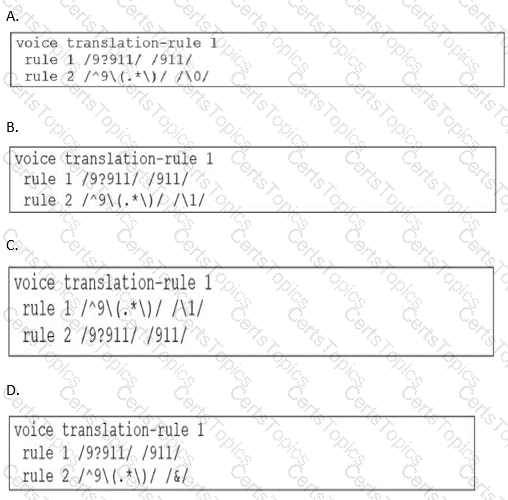 An administrator needs to stop the leading 9 from outbound calls on an IOS Voice Gateway and ensure that the system handles 911 emergency calls Which configuration is needed to accomplish this task?