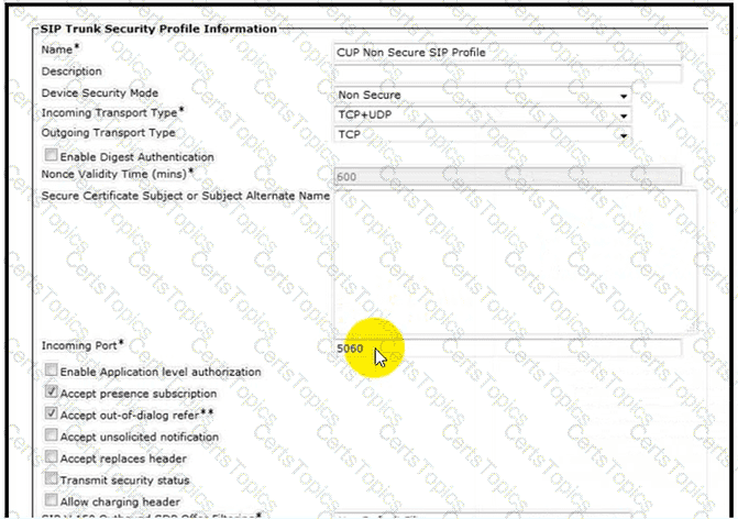 Refer to the exhibit. A collaboration engineer is configuring the Cisco UCM IM and Presence Service. Which two steps complete the configuration of the SIP trunk security profile? (Choose two.)